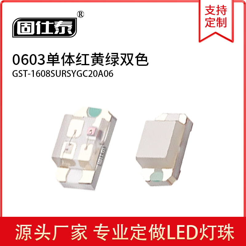 • 貼片LED燈珠發(fā)光二極管0603單體紅黃綠雙色0.06W發(fā)光金線銅支架...