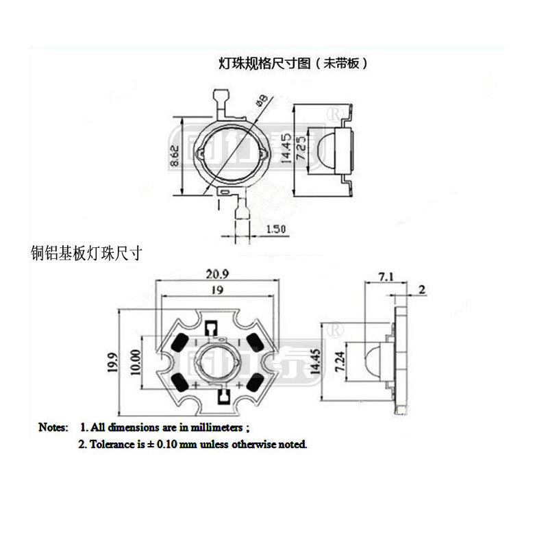 • 仿流明 1W/3W大功率LED燈珠垂直芯片高亮橙光 橙燈強光手電筒燈...