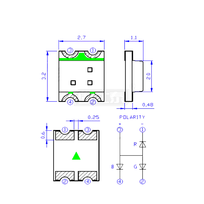 • 貼片LED發(fā)光二極管1206RGB全彩共陰1209七彩紅綠藍(lán)3227七彩三色燈...