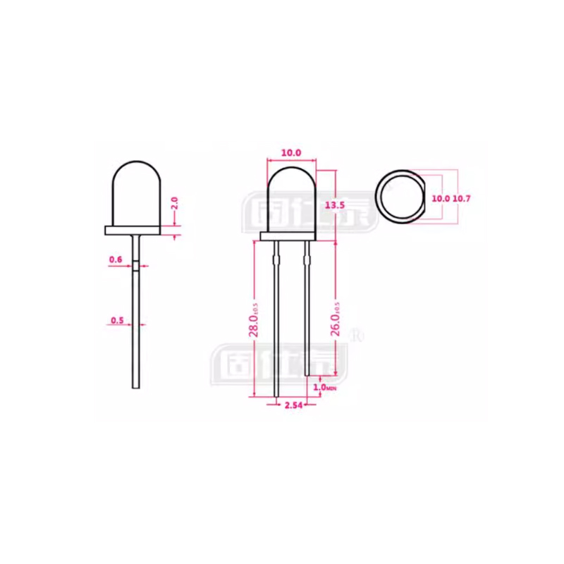• F10MM F10/10MM透明2腳白發(fā)紅 紅光 LED直插燈珠 二極管長(zhǎng)腳 短腳...