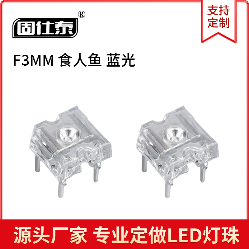 • F3MM食人魚 藍光 藍燈超高亮LED燈珠圓頭四腳模組 發(fā)光二極管直插...