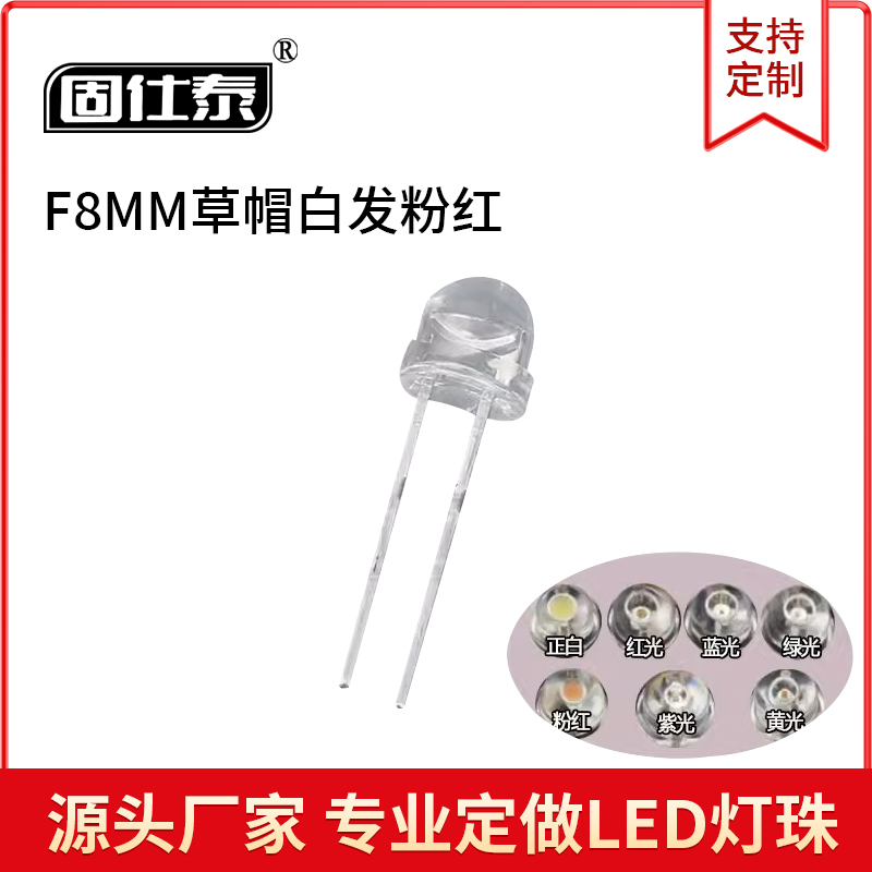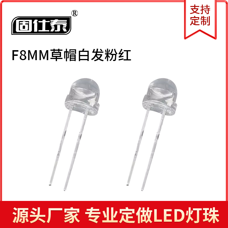 • F8草帽 粉紅光3000MCD透明 直插燈珠8mm LED發(fā)光二極管超高亮長(zhǎng)腳...