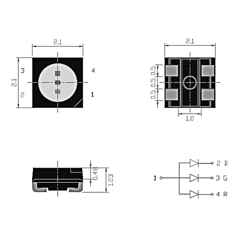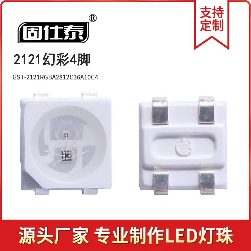 • 2121內(nèi)置IC燈珠LED幻彩燈珠LED貼片式LED2121RGB幻彩燈珠幻彩4腳...