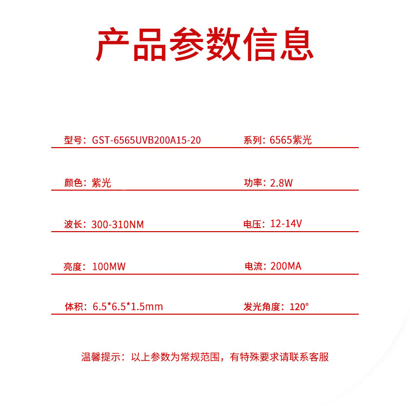 • UVB 300/310nm燈珠6565紫外線LED光療儀植物爬寵烏龜補鈣廠家直供...